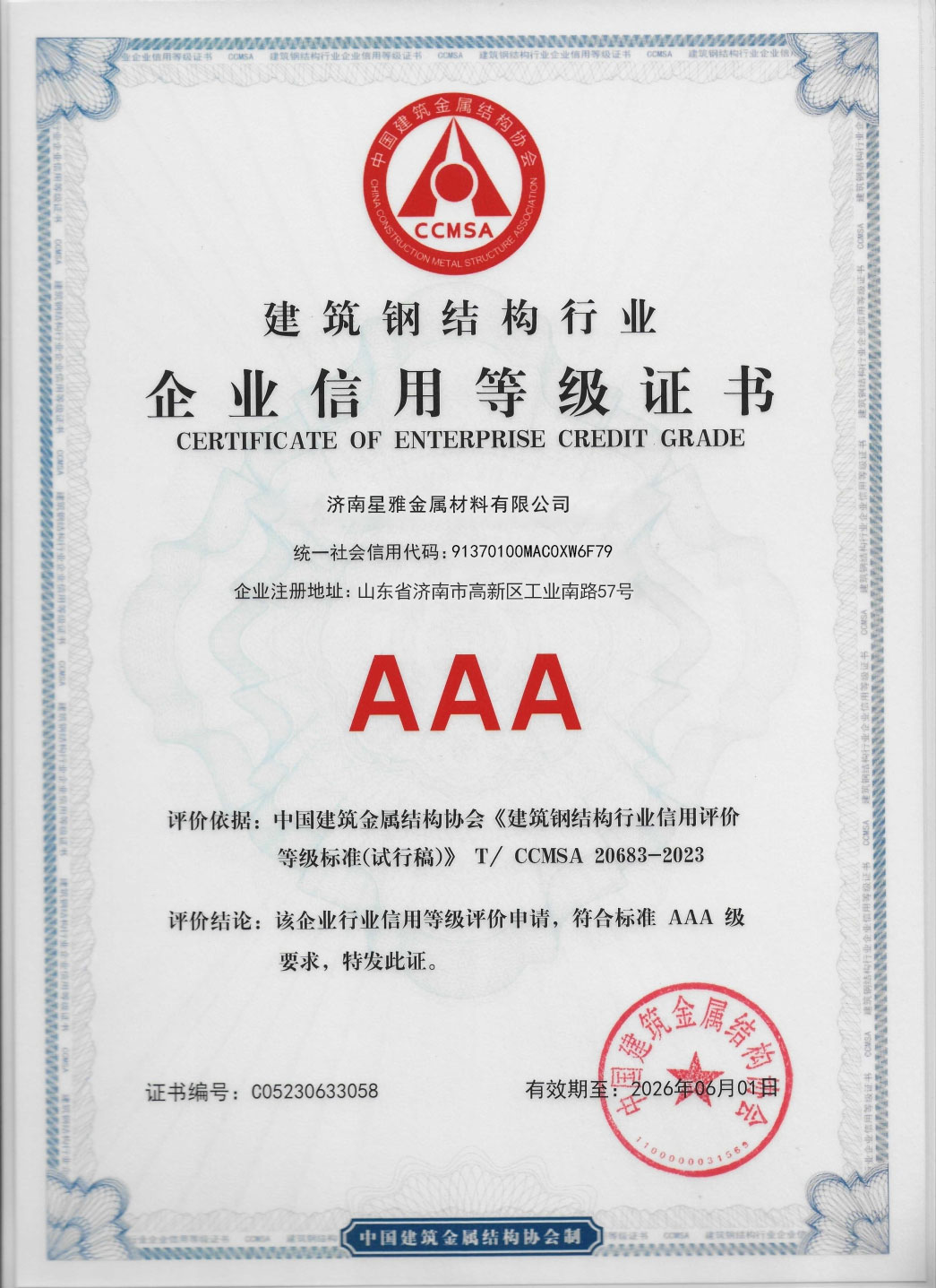 • 钢结构信用等级证书
