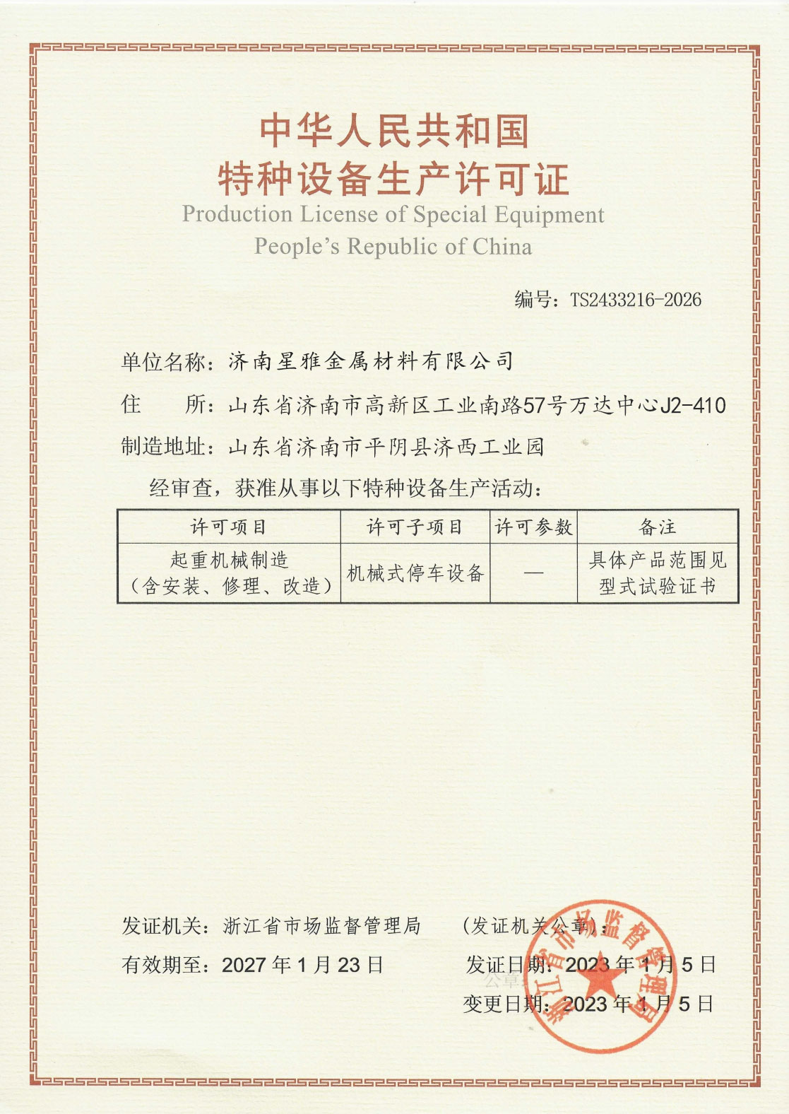 • 特种设备制造证书