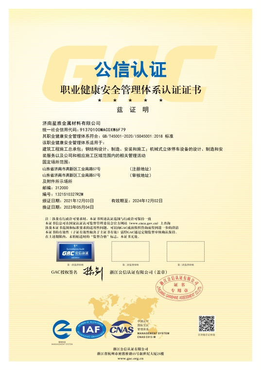 Jinan Xingya Metal Material Co., Ltd. is a comprehensive enterprise specializing in steel raw material sales, as well as the design, R&D, fabrication, and installation of steel structures. Possessing independent import-export rights, the company holds a Class-A Specialized Design Qualification for Steel Structures and a Grade-I Steel Structure Manufacturing Certification. It is also accredited with multiple international certifications including AISC (American Institute of Steel Construction) and UKAS (United Kingdom Accreditation Service).