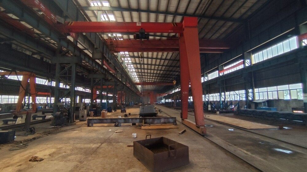 The facility operates 170 sets of advanced fabrication equipment,including large hydraulic press brakes,CNC drilling machines,China's largest shot blasting units,and ultrasonic flaw detectors,ensuring precision manufacturing standards.