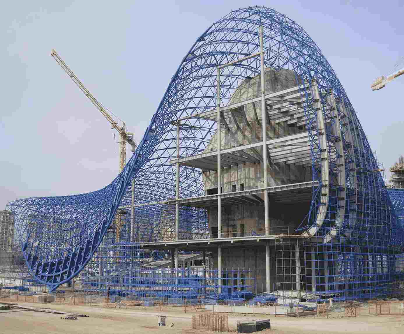 Description: Non-geometric, curved, or sculptural space frames used in avant-garde architecture.